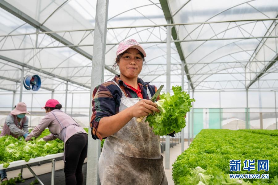 9月29日,搬遷戶徐開蘭(右)在會澤縣華泥產(chǎn)業(yè)扶貧基地采收蔬菜。新華社記者 胡超 攝