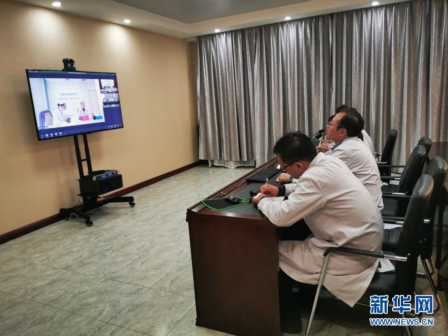 2019年10月25日,黑龍江省海倫市人民醫(yī)院醫(yī)生通過遠(yuǎn)程技術(shù)與外地專家一同進(jìn)行會診(手機(jī)照片)。新華社發(fā)
