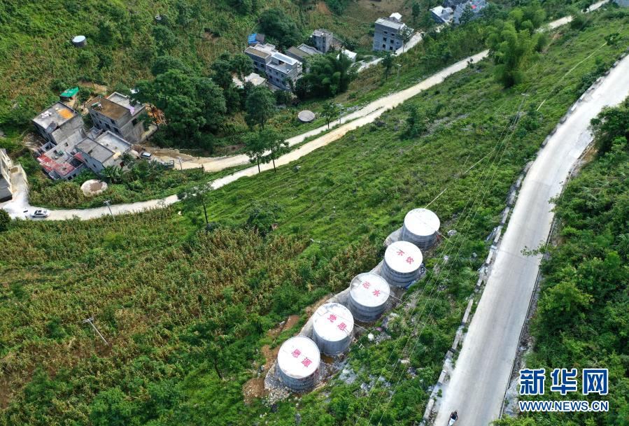 這是廣西都安瑤族自治縣永安鎮(zhèn)安蘭村新建的水柜(7月22日攝,無人機(jī)照片)。新華社記者 周華 攝