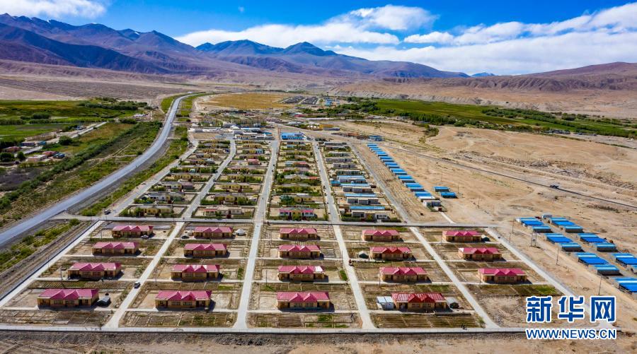 位于帕米爾高原上的新疆喀什地區(qū)塔什庫(kù)爾干塔吉克自治縣一處村莊新貌(6月10日攝,無(wú)人機(jī)照片)。新華社記者 胡虎虎 攝