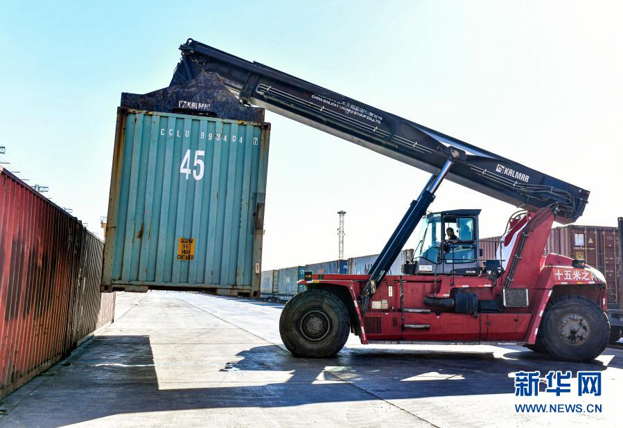 新疆阿拉山口站綜合換裝庫(kù)(三區(qū))內(nèi)等待換裝的集裝箱(9月29日攝)。新華社發(fā)(于蘇甫·艾尼 攝)