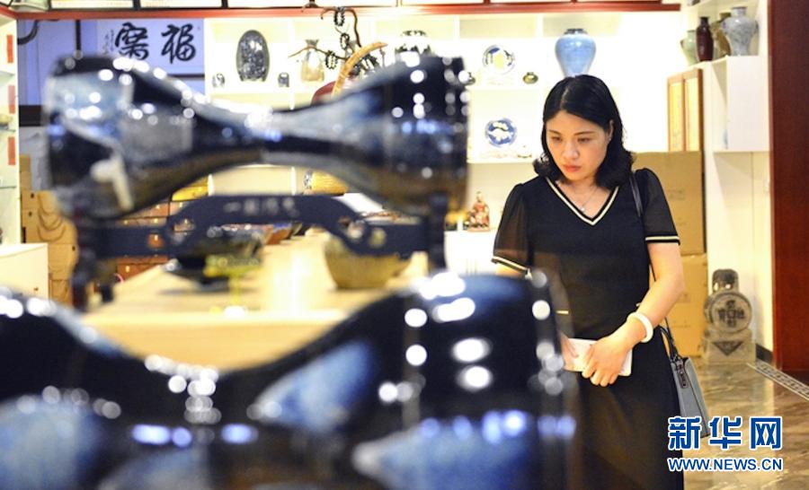觀眾在河南省平頂山市魯山縣花瓷藝術館內(nèi)欣賞花瓷工藝品(7月27日攝)。新華社發(fā)(王克偉 攝)