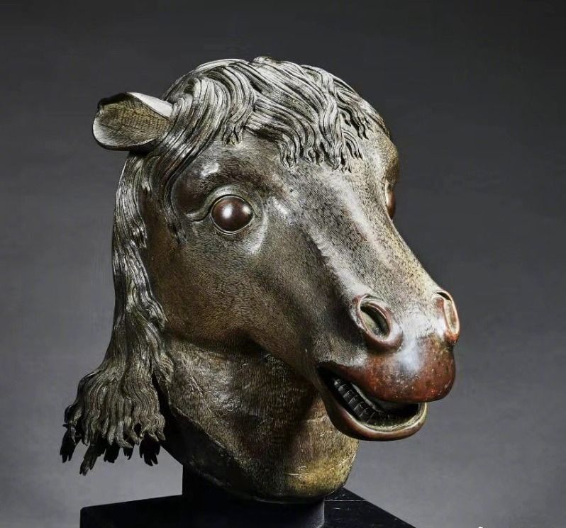 馬首銅像為意大利人郎世寧設(shè)計(jì),清乾隆年間由宮廷匠師精工制作,融合東西方藝術(shù)風(fēng)格。