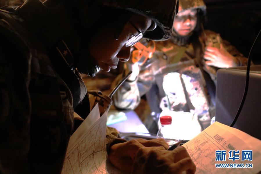 汽車(chē)運(yùn)輸專業(yè)參賽隊(duì)員在野外進(jìn)行圖上方位判定(11月30日攝)。新華社發(fā)(呂冀周 攝)
