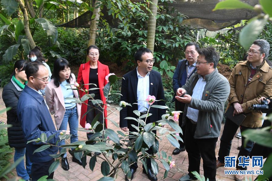 在廣西南寧市金花茶公園,南寧市市政和園林管理系統(tǒng)部分黨員干部聯(lián)系實(shí)際學(xué)習(xí)黨的十九屆五中全會精神(12月3日攝)。新華社記者 陸波岸 攝