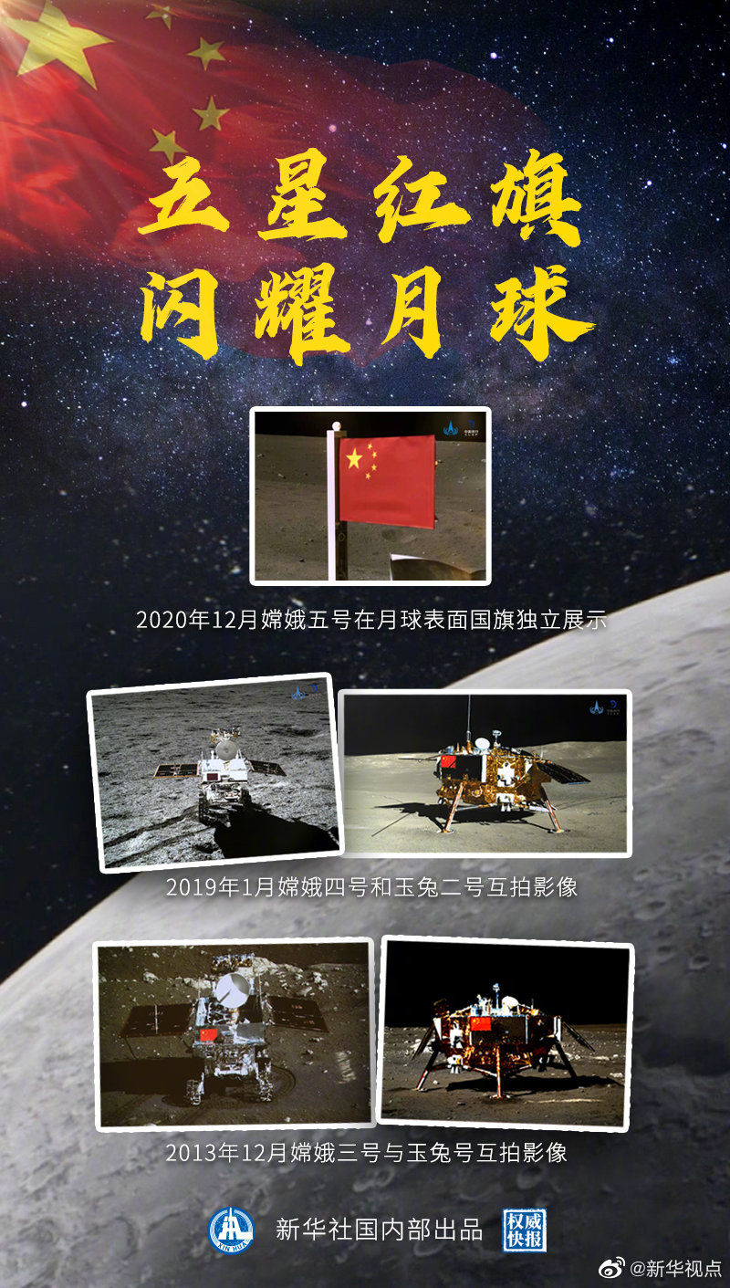 經(jīng)過(guò)科研團(tuán)隊(duì)的數(shù)據(jù)接收和處理,4日下午,國(guó)家航天局公布了探月工程嫦娥五號(hào)探測(cè)器在月球表面國(guó)旗獨(dú)立展示的照片。這是繼嫦娥三號(hào)、四號(hào)任務(wù)后,五星紅旗又一次展現(xiàn)在月球表面。畫面中,鮮艷的五星紅旗格外耀眼。轉(zhuǎn)發(fā),祝福祖國(guó)!??