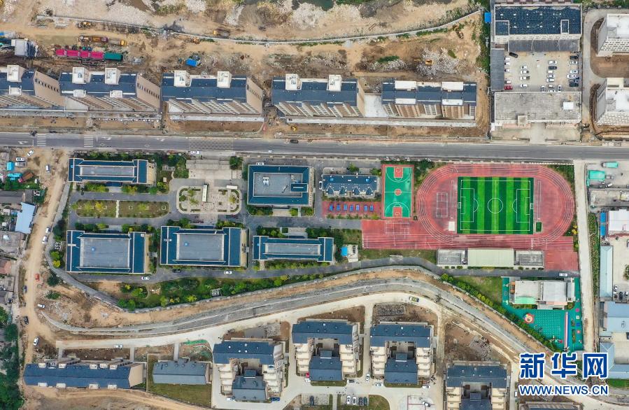 這是河北省阜平縣龍泉關(guān)學(xué)校鳥瞰圖(10月5日攝,無人機照片)。新華社發(fā)
