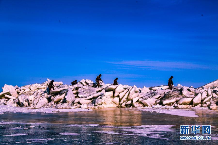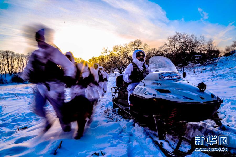 東極哨所組織邊境守防演練,官兵們?cè)谘策墸?1月4日攝)。新華社發(fā)(李寶成 攝)