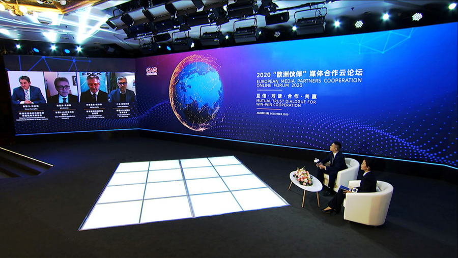 12月10日,中央廣播電視總臺以視頻連線的方式舉辦2020“歐洲伙伴”媒體合作云論壇。中宣部副部長、中央廣播電視總臺臺長、總編輯慎海雄出席并發(fā)表致辭,強調(diào)堅持多邊主義,加強對話交流,構(gòu)建中歐媒體伙伴關(guān)系。中央廣播電視總臺相關(guān)代表與來自歐洲地區(qū)16個國家25家媒體機構(gòu)的28名與會代表圍繞“互信·對話·合作·共贏”主題,相聚云端展開對話,共同發(fā)布《加強媒體合作聯(lián)合聲明》,積極推動中歐媒體加強合作、同舟共濟、團結(jié)抗疫,提振國際社會信心。