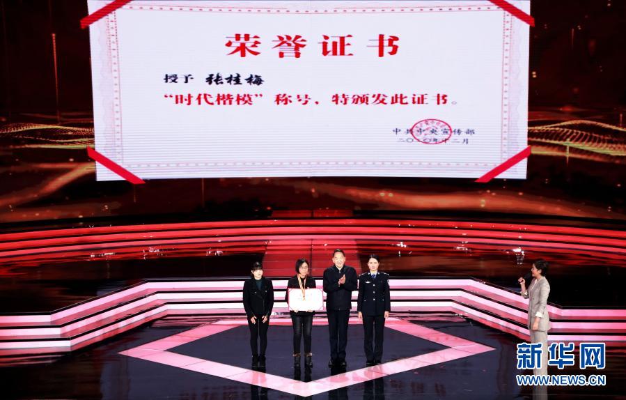 “時代楷?!卑l(fā)布儀式現(xiàn)場宣讀了《中共中央宣傳部關(guān)于授予張桂梅同志“時代楷模”稱號的決定》,播放了反映張桂梅同志先進事跡的短片。中央宣傳部負(fù)責(zé)同志為張桂梅頒發(fā)了“時代楷?!豹?wù)潞妥C書。全國婦聯(lián)、教育部、云南省委有關(guān)負(fù)責(zé)同志,當(dāng)?shù)亟處煂W(xué)生和干部群眾代表等參加發(fā)布儀式。