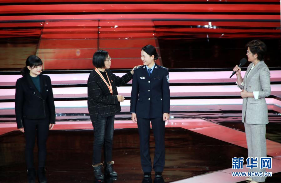 張桂梅(左)在“時代楷?!卑l(fā)布儀式上與主持人交流(12月7日攝)。新華社記者 潘旭 攝