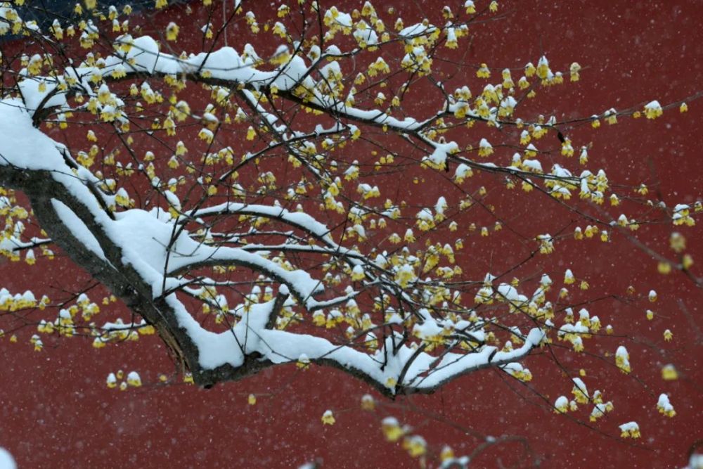 ↑這是2018年1月27日在南京市明孝陵景區(qū)內拍攝的雪中梅。新華社發(fā)(王躍武攝)
