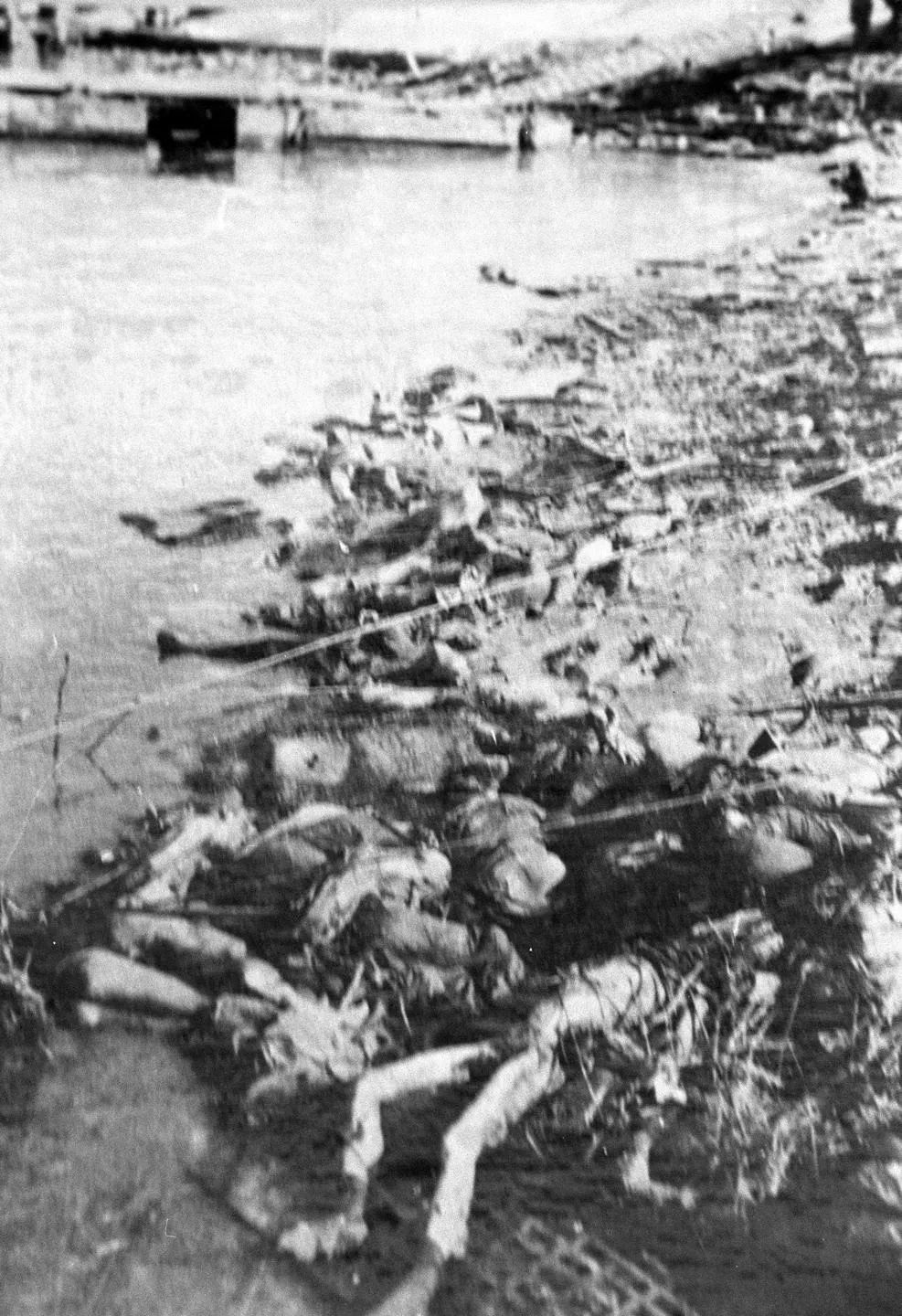 ↑日軍將被殺害的南京市民投入長江。新華社發(fā)