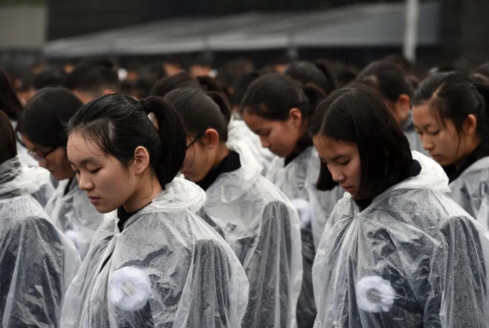 ↑2016年12月13日,學生代表在南京大屠殺死難者國家公祭儀式上默哀。新華社發(fā)