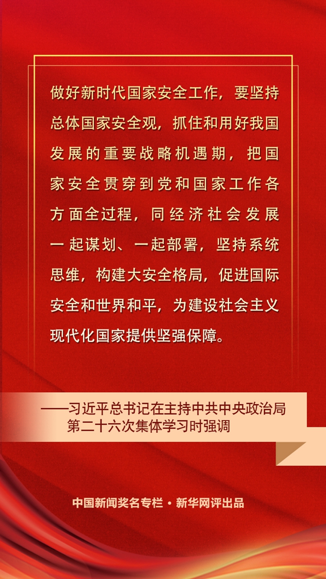 繼黨的十九屆五中全會(huì)提出把統(tǒng)籌發(fā)展和安全納入“十四五”時(shí)期我國(guó)經(jīng)濟(jì)社會(huì)發(fā)展的指導(dǎo)思想之后,切實(shí)做好國(guó)家安全工作又成為12月11日下午中共中央政治局第二十六次集體學(xué)習(xí)的內(nèi)容。習(xí)近平總書記在主持學(xué)習(xí)時(shí)強(qiáng)調(diào)了國(guó)家安全在黨和國(guó)家工作大局中的重要地位,并就貫徹總體國(guó)家安全觀提出明確要求。