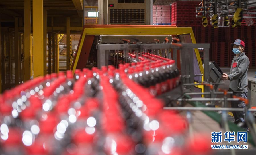 3月24日,工人在復(fù)工復(fù)產(chǎn)的湖北太古可口可樂(lè)飲料有限公司流水線上作業(yè)。新華社記者 肖藝九 攝