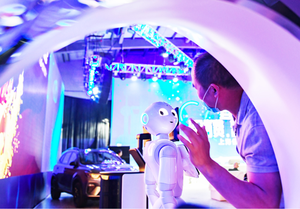 5月17日,上海信息消費云峰匯現(xiàn)場的智能機(jī)器人