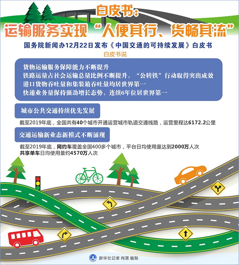 新華社北京12月22日電(記者魏玉坤、周圓)國務院新聞辦22日發(fā)布的《中國交通的可持續(xù)發(fā)展》白皮書介紹,運輸服務實現“人便其行、貨暢其流”,通達性和保障性顯著增強。交通運輸對國家經濟社會發(fā)展的支撐顯著增強,促投資、促消費、穩(wěn)增長作用明顯。