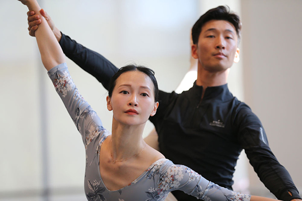 5月17日,項陽(左)作為主要演員參加現(xiàn)代芭蕾《家園的呼喚》連排。