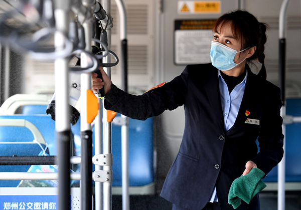 疫情期間,對(duì)車輛進(jìn)行消毒成了她每天必須完成的新任務(wù)。扶手、垃圾箱、空調(diào)出風(fēng)口、司機(jī)駕駛座,每一個(gè)位置黃菲都清理得很認(rèn)真。