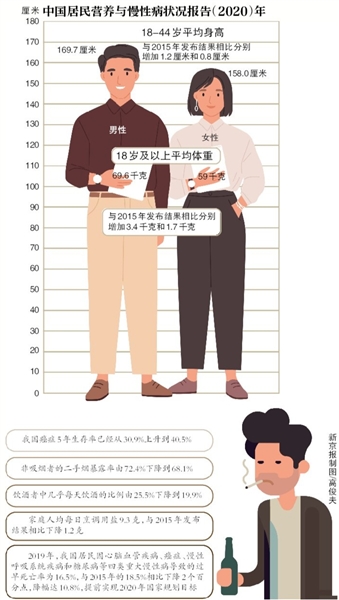 據(jù)介紹,2015年至2019年,國(guó)家衛(wèi)健委組織中國(guó)疾控中心、國(guó)家癌癥中心、國(guó)家心血管病中心開展了新一輪中國(guó)居民慢性病與營(yíng)養(yǎng)監(jiān)測(cè),覆蓋全國(guó)31個(gè)?。▍^(qū)、市)近6億人口,現(xiàn)場(chǎng)調(diào)查人數(shù)超過60萬(wàn),具有國(guó)家和省級(jí)代表性,根據(jù)監(jiān)測(cè)結(jié)果編寫形成《中國(guó)居民營(yíng)養(yǎng)與慢性病狀況報(bào)告(2020年)》。