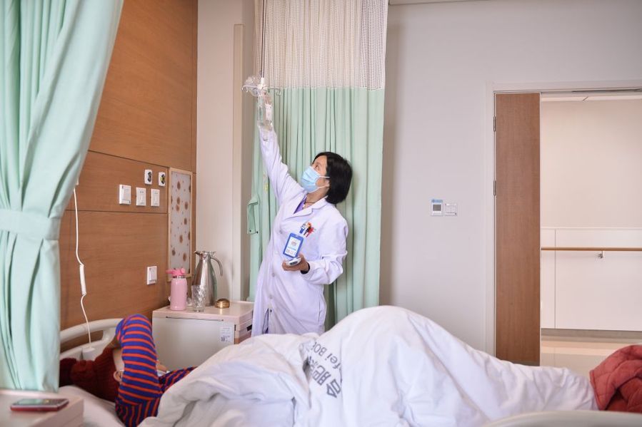 12月19日,在合肥市京東方醫(yī)院,周國(guó)紅在病房工作。