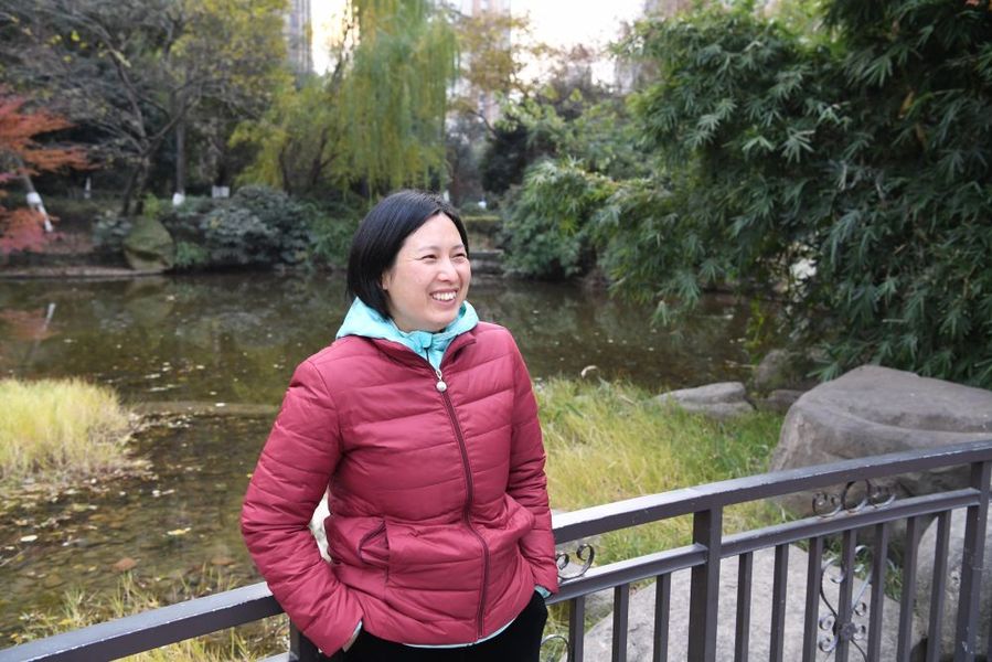12月17日,周國(guó)紅在小區(qū)里休息。