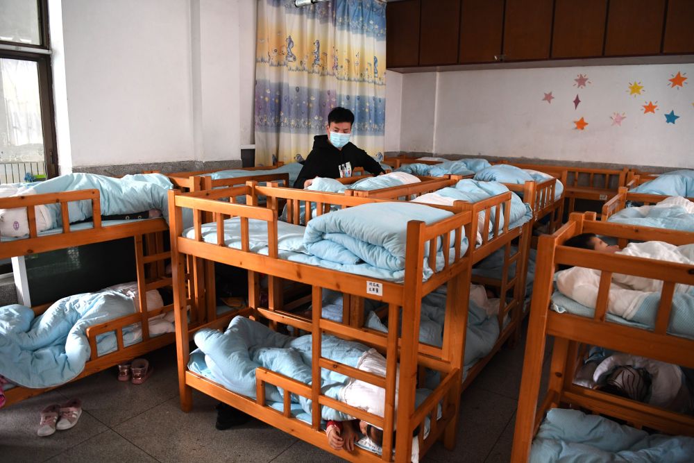 ??12月18日,孫浩在合肥鋼鐵集團(tuán)第一幼兒園看護(hù)孩子們午睡。