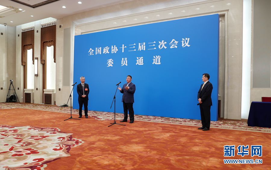 全國(guó)政協(xié)十三屆三次會(huì)議首場(chǎng)“委員通道”采訪活動(dòng)于5月21日在人民大會(huì)堂新聞發(fā)布廳舉行,邀請(qǐng)部分全國(guó)政協(xié)委員通過(guò)網(wǎng)絡(luò)視頻方式接受媒體采訪。圖為“委員通道”現(xiàn)場(chǎng)。新華網(wǎng) 王翰林 攝