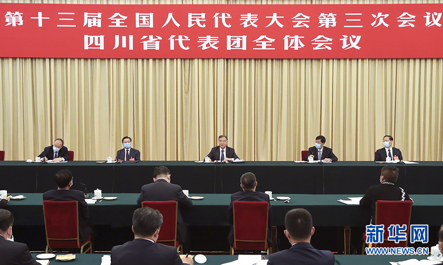 5月22日,中共中央政治局常委、全國(guó)政協(xié)主席汪洋參加十三屆全國(guó)人大三次會(huì)議四川代表團(tuán)的審議。 新華社記者 姚大偉 攝