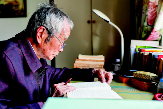 4月30日,金平在位于西南政法大學沙坪壩校區(qū)的家中伏案工作。本報記者黃偉攝