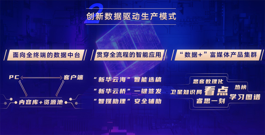 再造升級(jí)后的新華網(wǎng)突出“技術(shù)引領(lǐng)”,以“數(shù)據(jù)”為核心生產(chǎn)要素,為內(nèi)容制作、聚合分發(fā)、用戶運(yùn)營(yíng)等提供全流程支撐,實(shí)現(xiàn)生產(chǎn)模式“由外而內(nèi)”的變革。