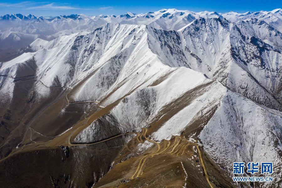 這是2020年5月1日拍攝的通往新疆喀什地區(qū)葉城縣西合休鄉(xiāng)亞爾阿格孜村的道路蜿蜒在崇山峻嶺間(無人機照片)。