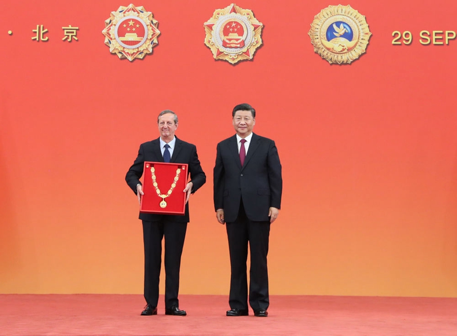 (圖為2019年9月29日,習近平向古共中央第一書記勞爾·卡斯特羅頒授“友誼勛章”,時任古巴駐華大使拉米雷斯代領。新華社記者 王曄 攝)