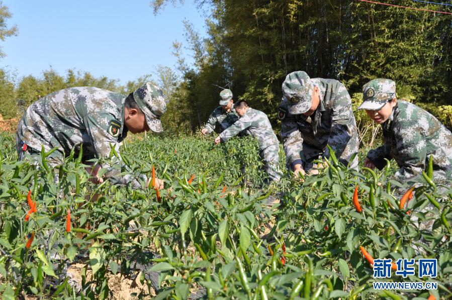 廣西梧州市長洲區(qū)人武部組織干部職工到對口幫扶的村子幫助村集體采摘辣椒(2020年12月3日攝)。新華社發(fā)(劉靜 攝)