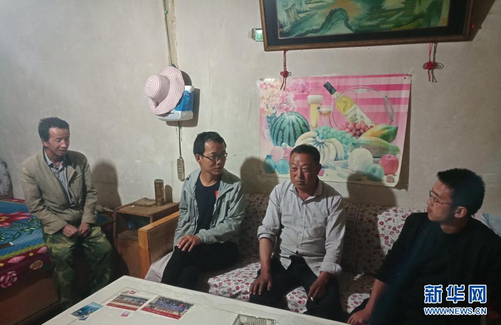 甘肅省甘南藏族自治州卓尼縣木耳鎮(zhèn)干部孫照杰(左二)在群眾家中了解情況(資料照片)。新華社發(fā)