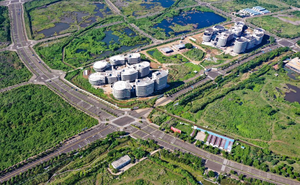海南生態(tài)軟件園園區(qū)。(無(wú)人機(jī)照片,新華社記者郭程2020年4月1日攝)