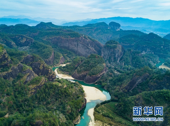 武夷山風景名勝區(qū)內的綠水青山(無人機照片,2021年1月3日攝)。新華社記者宋為偉攝