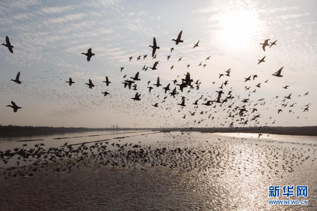 成群羅紋鴨在湖南西洞庭湖國家級(jí)自然保護(hù)區(qū)飛翔(2020年11月11日攝,無人機(jī)照片)。新華社記者 陳思汗 攝