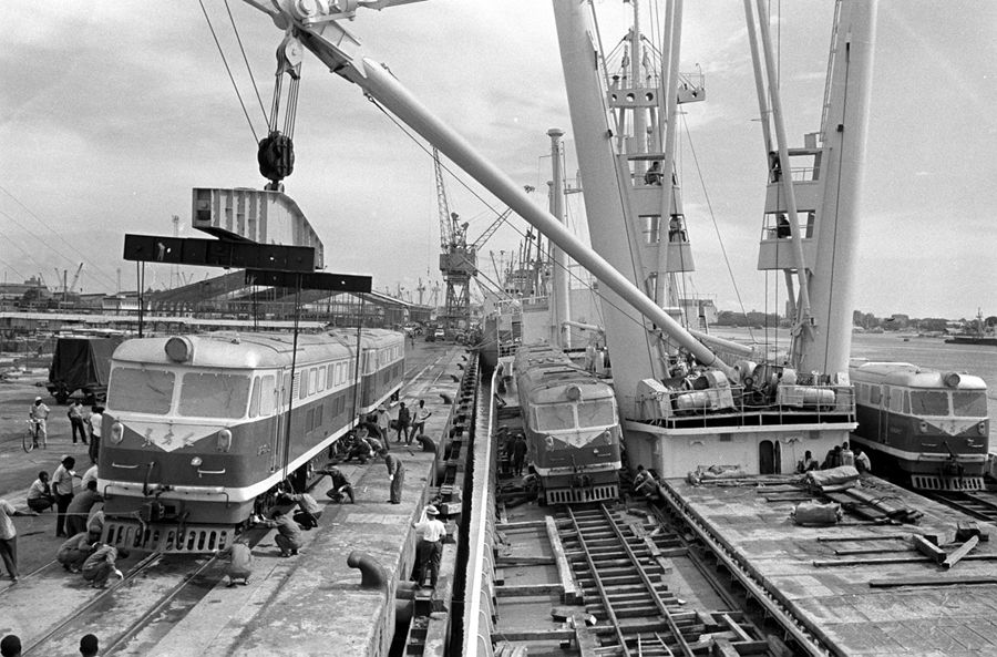 圖為中國援助坦贊鐵路的首批機車運抵坦桑尼亞達累斯薩拉姆港口。新華社圖片