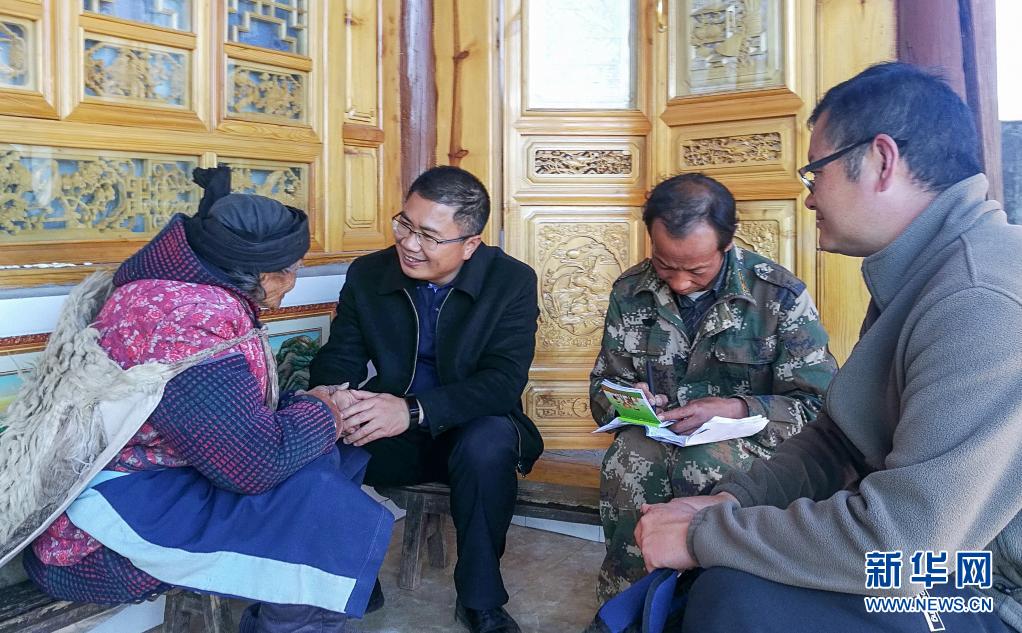 聶金輝(左二)在劍川縣羊岑鄉(xiāng)金坪村走訪建檔立卡貧困戶(2018年11月20日攝)。新華社發(fā)(劍川縣融媒體中心供圖)