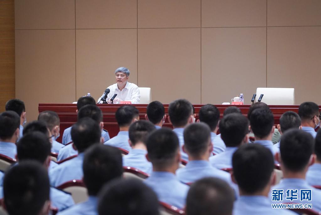 7月15日,黨史學(xué)習(xí)教育中央宣講團(tuán)成員吳德剛在第六場(chǎng)報(bào)告會(huì)上作宣講報(bào)告。新華社記者 陳曄華 攝