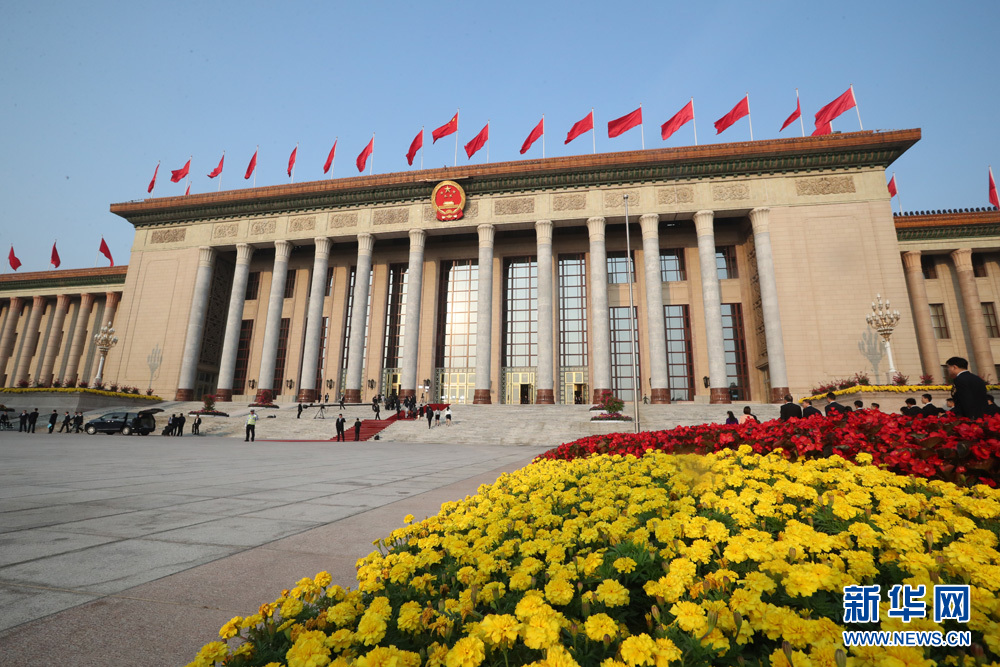 人民大會(huì)堂外紅旗飄揚(yáng)-新華網(wǎng)