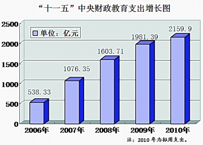 “十一五”中央財政教育支出增長圖