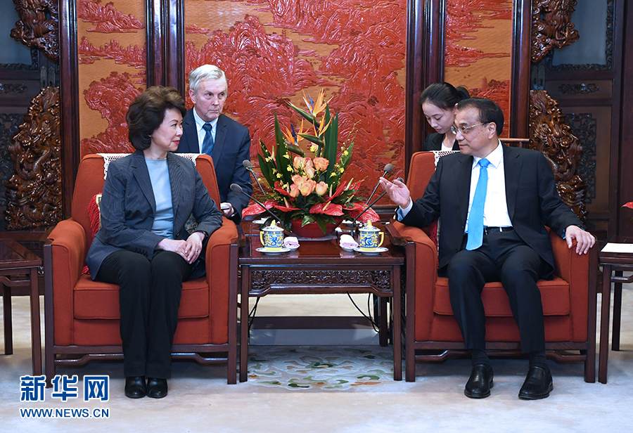 李克強(qiáng)會(huì)見美國運(yùn)輸部長趙小蘭