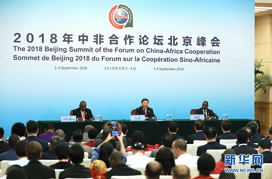 新華社北京9月4日電(記者鄭明達(dá)、孫奕)4日,2018年中非合作論壇北京峰會(huì)閉幕后,國(guó)家主席習(xí)近平同論壇前任共同主席國(guó)南非總統(tǒng)拉馬福薩、新任共同主席國(guó)塞內(nèi)加爾總統(tǒng)薩勒在人民大會(huì)堂共同會(huì)見記者。