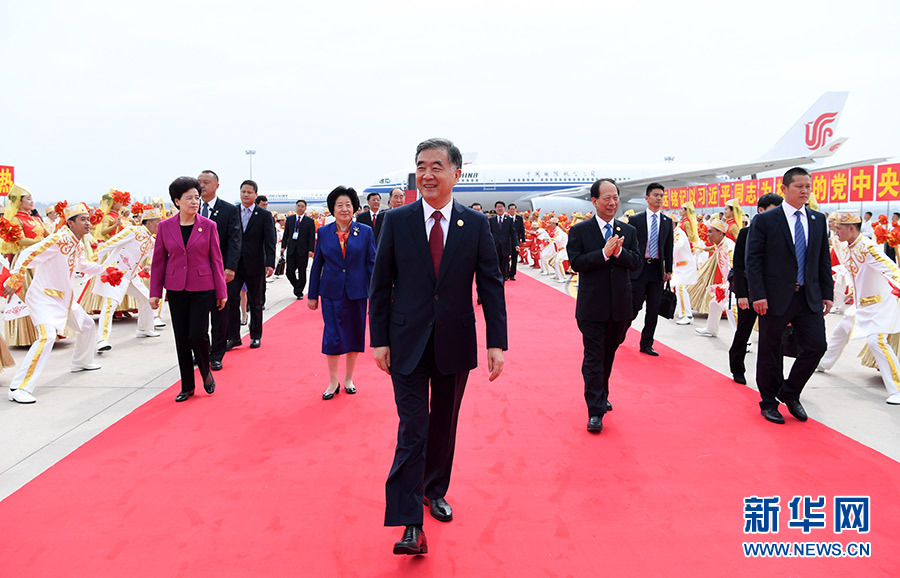 9月19日,以中共中央政治局常委、全國(guó)政協(xié)主席汪洋為團(tuán)長(zhǎng)的中央代表團(tuán)飛抵銀川,出席寧夏回族自治區(qū)成立60周年慶?;顒?dòng)。中央代表團(tuán)在機(jī)場(chǎng)受到寧夏各族群眾的熱烈歡迎。 新華社記者 張領(lǐng) 攝