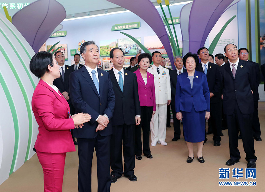 9月19日,中共中央政治局常委、全國政協(xié)主席、中央代表團團長汪洋率代表團全體成員來到寧夏回族自治區(qū)銀川國際會展中心,參觀《建設(shè)美麗新寧夏 共圓偉大中國夢——寧夏回族自治區(qū)成立60周年大型成就展》。 新華社記者 劉衛(wèi)兵 攝