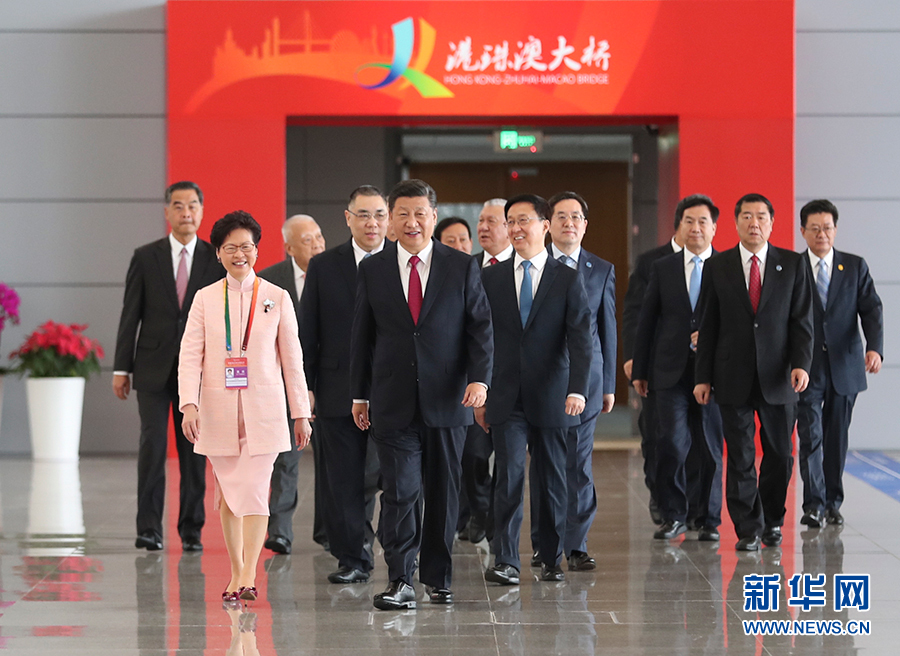 在觀看了反映大橋建設情況視頻后,中共中央政治局委員、廣東省委書記李希,香港特別行政區(qū)行政長官林鄭月娥,澳門特別行政區(qū)行政長官崔世安和韓正先后致辭。