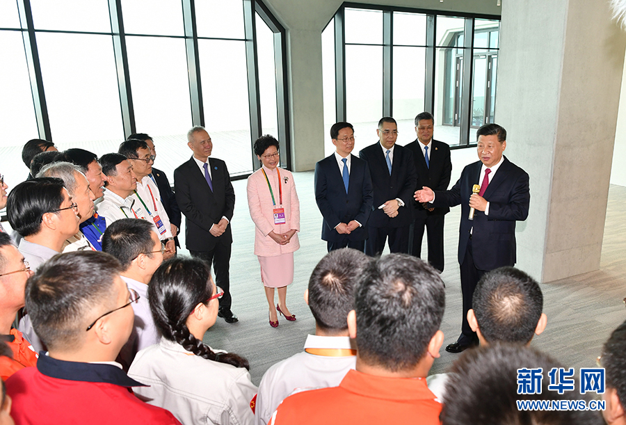 東人工島位于港珠澳大橋水上橋梁和水下隧道的銜接部分,是大橋建設中的關鍵節(jié)點工程。習近平等乘車來到這里,登上西側平臺眺望大橋,結合圖片、模型詳細了解大橋建設情況,并會見了大橋管理和施工等方面的代表,同他們一一握手、親切交談。他指出,港珠澳大橋是國家工程、國之重器。你們參與了大橋的設計、建設、運維,發(fā)揮聰明才智,克服了許多世界級難題,集成了世界上最先進的管理技術和經(jīng)驗,保質保量完成了任務,我為你們的成就感到自豪,希望你們重整行裝再出發(fā),繼續(xù)攀登新的高峰。